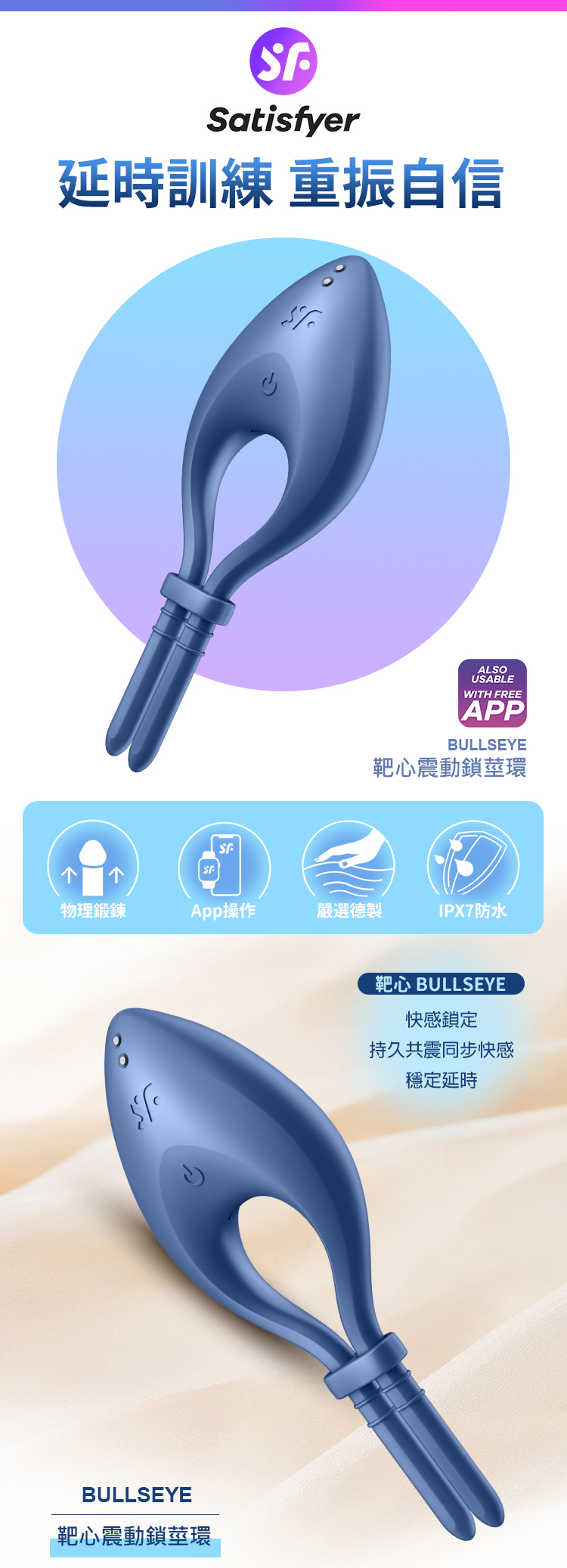 品名:Satisfyer|Bullseye|靶心 智能可調節男士鎖莖環 藍